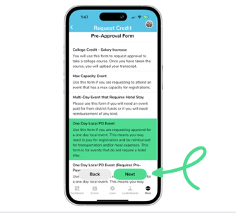 Learners can easily request pre-approval to attend an event through the MobileMind app, streamlining the process and eliminating the need for cumbersome paperwork. This convenient feature allows users to submit their requests directly from their mobile devices, ensuring that they can manage their schedules and commitments while on the go.